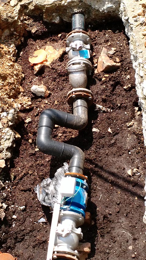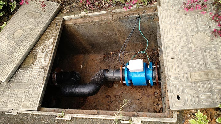 城鄉(xiāng)一體化供水計(jì)量電池供電電磁流量計(jì)安裝現(xiàn)場(chǎng)