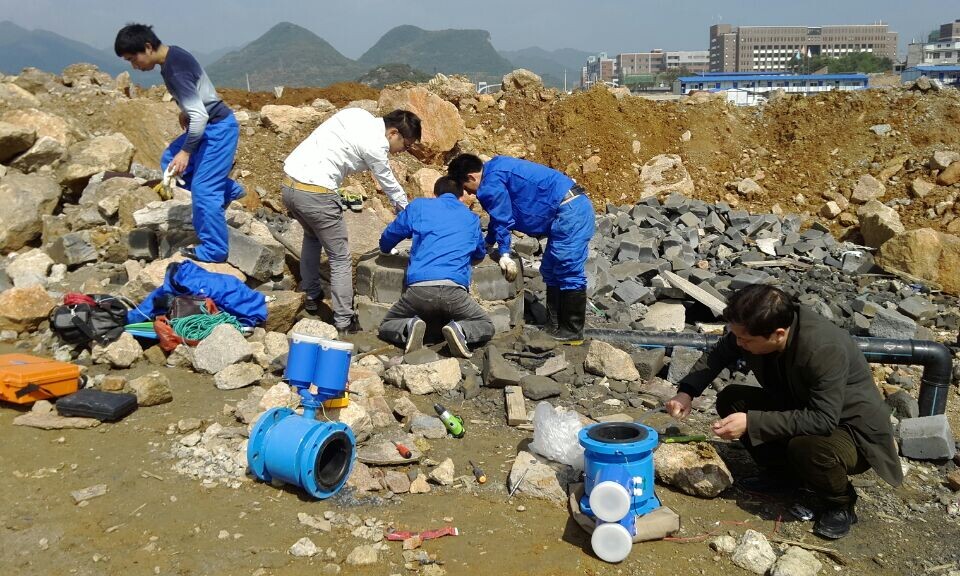 城鄉(xiāng)一體化供水計量電池供電電磁流量計安裝現(xiàn)場