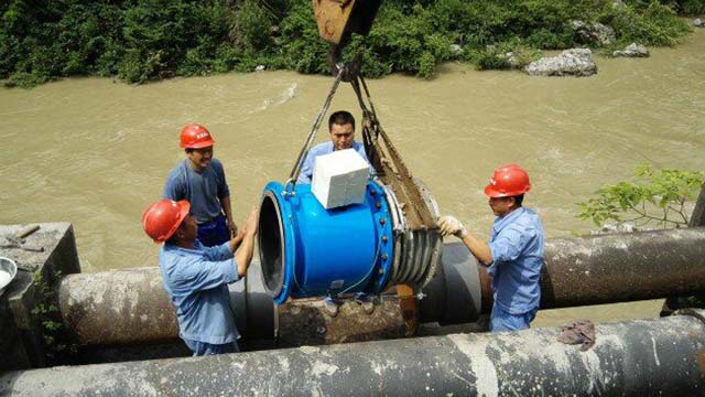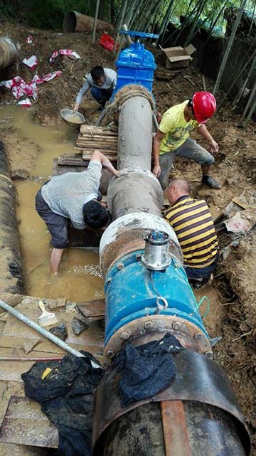 城鄉(xiāng)一體化供水計(jì)量電池供電電磁流量計(jì)安裝現(xiàn)場(chǎng)