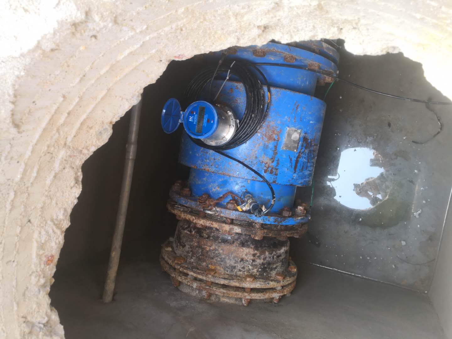 城鄉(xiāng)一體化供水計量電池供電電磁流量計安裝現(xiàn)場